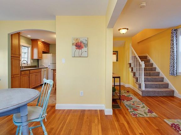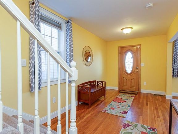 Recently renovated Colonial is a commutes dream, located less than a mile to highways & train station. First floor has open floor plan with hardwood floors in entry, dining room and family room. Bright kitchen includes all appliances, island with ceramic tile. Full bath renovated throughout and includes includes washer & dryer! 2nd floor features 2 nice sized carpeted bedrooms. Large deck overlooking fenced yard.
