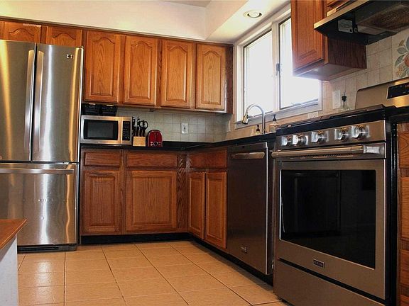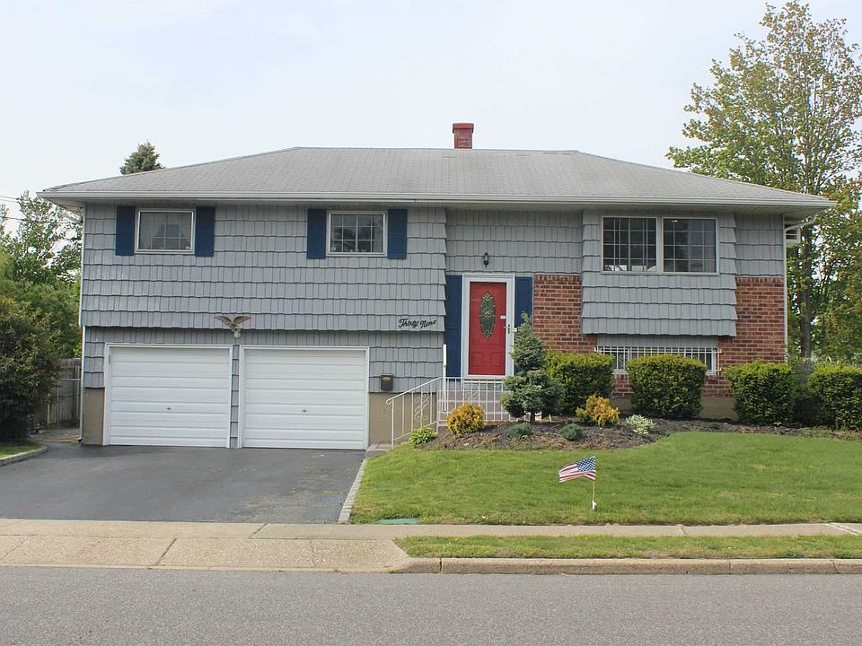 Impressive, renovated high-ranch in quiet & desirable neighborhood! Open layout & hardwood floors throughout. This warm & inviting home boasts renovated eat-in-kitchen, renovated NEW 2 full bathrooms, deck looking over beautiful backyard & patio, 2 car garage and large driveway. GAS HEATING! sprinkler system / alarm system / You can have completely separate living space downstairs with proper permits (1 bedroom, living room, kitchenette, full bath). Property tax with star is 9173.33