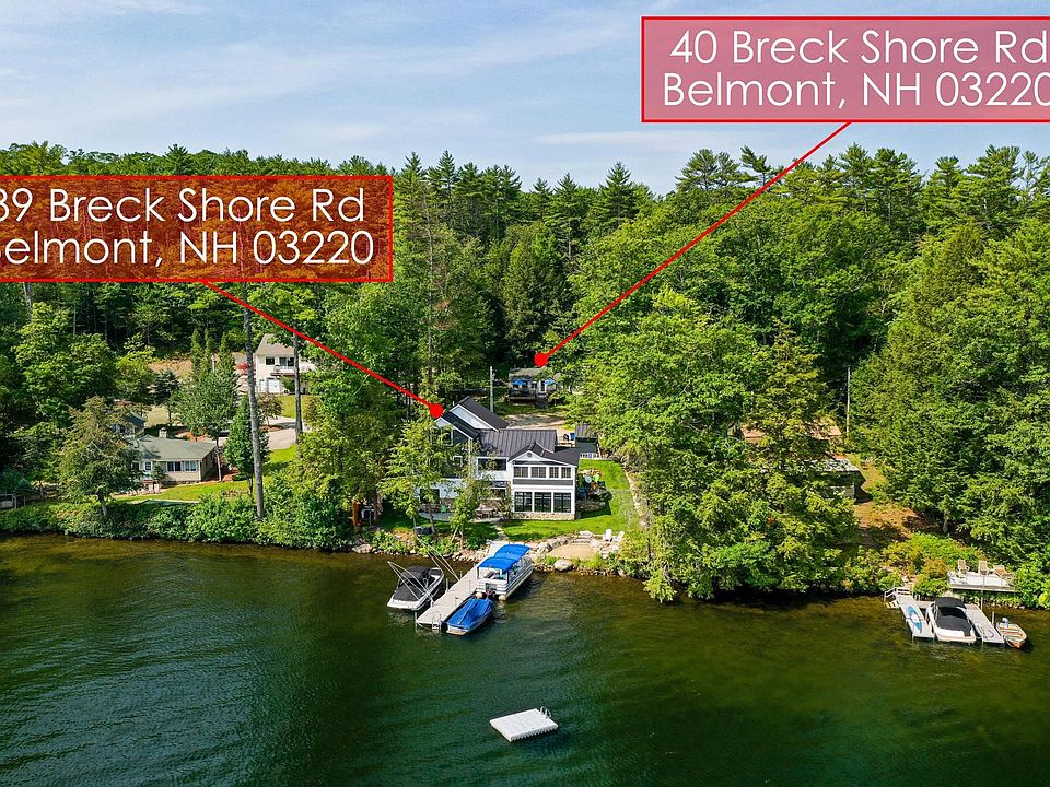 ***Lake Winnisquam rare offering of Two Homes. To Close Simultaneously.*** 39 Breck Shore MLS #4878118. 94'+/-Lake Winnisquam Waterfrt expansive Lake & Belknap Mtn views. Perched sandy beach. A masterful contemporary home. The original build 1936, now a beautifully renovated master bedroom ensuite. The home has had a talented designed addition in 2020, a total of 4 bedrooms/3 baths. (including a fun "bunk" room & game room.) 3228 sq feet of living area on .25 acre lot. The LL main living is an open plan with a custom kitchen, spacious dining area & a stone, gas fireplaced livingrm. All with fabulous views. Kitchen features: 12' kitchen island well chosen finishes & cabinetry, tin ceiling, gorgeous windows. Thermador 6 burner gas range/griddle, Fisher/Paykel DW, 2 LG refrigerators. This flr also has a bedroom, bath & a sitting room. Central Air. 50' Dock. Landscaped. patio, shed, kayak rack. 40 Breck Shore Rd MLS#4878120. Single level living adorable 914 sq ft cottage home .42 acre lot,Lake views & a ROW to the Lake across the road. 2 bedrooms, 1 bath. Vaulted wood ceiling, galley kitchen, stone, gas fireplace livingrm, newer windows, Rinnai, knotty pine, New deck. Plenty of parking. Both homes public sewer, drilled wells. Charming & cozy. You decide how you & your family/friends will live the Lake Life Swim, boat, snowmobile, ice fish, skate. Near I 93 ext 20, shopping, restaurants, Gunstock. Please No Drivebys. SCHEDULED SHOWINGS TO START SAT. AUG 21 AND SUN. AUG 22.