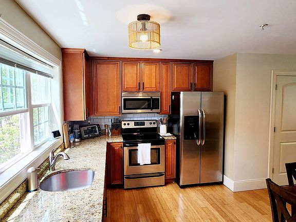 Beautiful, fully furnished 2 bedroom, 1.5 bathroom end unit condo with lots of privacy available 4/1/2025! Granite countertops, hardwood floors, central air, gas fireplace and private back deck. Location near the Laconia/Meredith town line less than 1 mile from Weirs Beach. Walking distance to several bars/restaurants and Funspot. 18 minutes to Gunstock and 14 minutes to Concord Hospital Laconia. One car garage with parking for 2 vehicles (1 in garage and 1 in driveway) plus guest parking. Water, sewer and trash included. Tenant is responsible for all other utilities. Available for 12 month term. Enjoy summer by the lake and beautiful NH fall foliage! - First month's rent and $2000 security deposit due at lease signing - Dog considered for the right tenant with additional $50/month non-refundable pet fee and pet insurance - Prior rental references, credit and criminal background check required - Renters insurance required - Absolutely NO smoking. No prior evictions