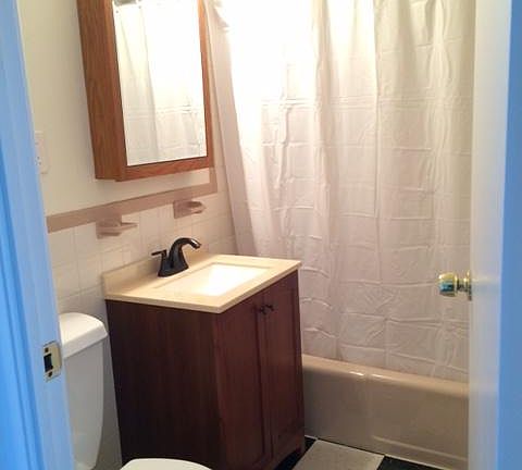 BIG light one bedroom apartment on top floor (3rd floor) of well maintained brick building on Watertown/Waltham line! Great location with easy access to major roads, buses, Newton, Boston, Belmont, Cambridge, etc. Nicely carpeted, big living room with built in wall a/c unit, large bedroom with big closet, Eat in Kitchen with full fridge and stove and garbage disposal, one full bath. Parking and laundry on site. Heat and hot water included. September start. First/Last/Fee. Great place! Heat and hot water included. Parking for one car inc. Laundry room on site. Up front costs are first and last month and one month brokerage fee.
