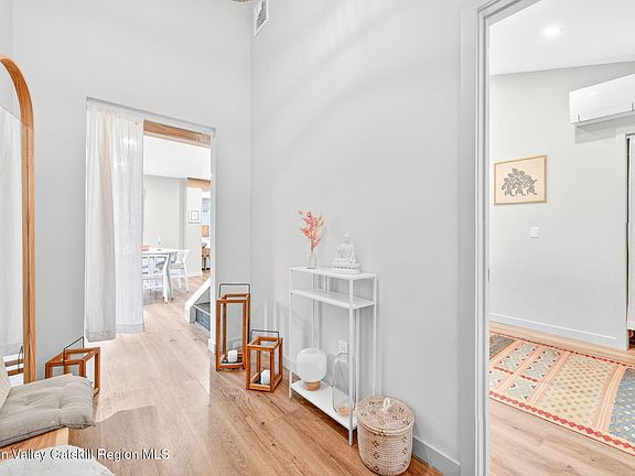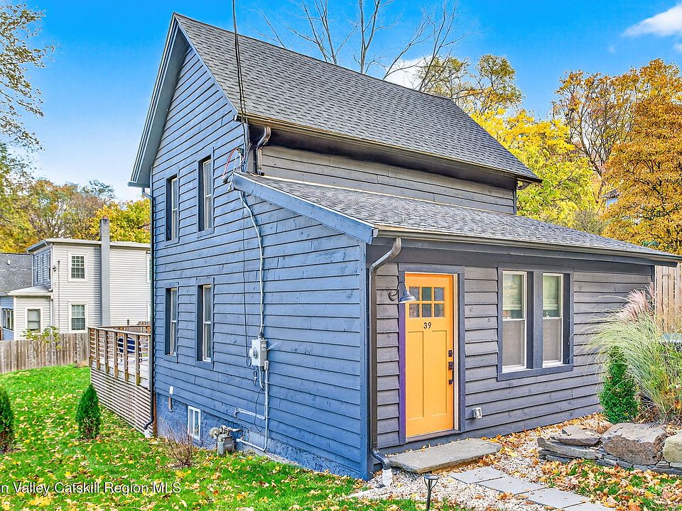 Discover 39 N Broadway nestled in the quaint hamlet of Esopus, located on the scenic Rondout Creek. This recently renovated gem is perfectly situated near fine dining and boutique shopping, offering the ideal blend of comfort and convenience. Enjoy leisurely walks along the hamlet's nature trail or launch your small boat at the nearby access point. With its thoughtful renovations, this property is truly turn-key and ready for you to enjoy. A short drive takes you to the Historic District of Kingston, while the Metro North Railroad is approximately 20 minutes away. Set on a corner lot, this home features additional landscaping that will enhance privacy as it matures. The first level presents an open-concept living, dining, and kitchen area designed for easy flow. The modern kitchen boasts sleek quartz countertops, a breakfast bar, a farmhouse sink, and ample cabinetry — a delightful space for cooking and entertaining. Adjacent to the kitchen, the living room offers sliding doors that lead to a back deck overlooking the partially fenced backyard, ideal for outdoor relaxation. No detail was overlooked during the renovation, with the current sellers adding ductless mini-splits for efficient heating and cooling—say goodbye to fuel deliveries! The first floor includes a petite bedroom with private access to a half bath, making it perfect for an office or meditation space. Upstairs, you'll find two generously sized bedrooms featuring high ceilings and extra windows that fill the space with natural light. The stylish guest bathroom is tiled with tasteful ceramic, complete with a soaking tub for ultimate relaxation. The primary bedroom is a spacious retreat, equipped with its own private bath designed for both comfort and efficiency, showcasing a beautifully tiled shower. This home reflects modern design and thoughtful craftsmanship, making it a must-see!