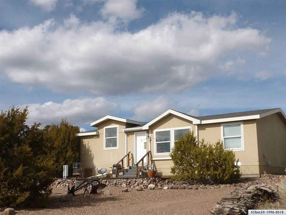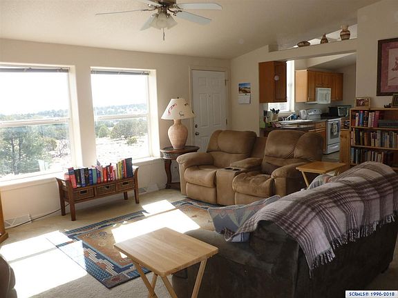 The 12+ acre setting for "Golden Views" are rolling hills of handsome pine & cedar. The property is served by a good well that produces 10+ gpm. Tuck yourself away and let the world go by. You can be quite self-sufficient on this property with lots of useable land for gardens and the meadows for your animals. "Golden Views" has a large front porch where you'll find yourself spending much time soaking up the gorgeous views of 4 surrounding mountain ranges. Measuring approximately 1,188 square feet this Karsten home offers 3 bedrooms and 2 full baths; living room ;beautiful country kitchen with dining room; and a separate laundry room. The home is top end construction of 2'x6' walls, double pane windows, heavy insulation package of R56 in the ceilings and R38 in the walls. There is forced air heat & air conditioning.