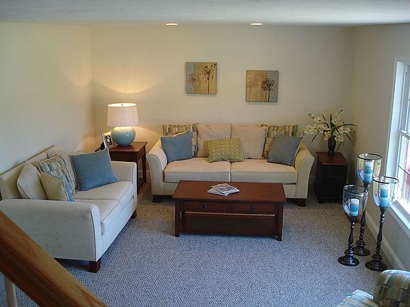 Duplex townhouse, 3 bedrooms, double closets on master bedroom, tile kitchen and bathrooms, slider in kitchen leads to deck, walk out bay in kitchen, large living/family room, large attic for storage with pull down stairs, basement has heat and a/c and rough studded walls for finishing, private driveway for two cars, freshly painted, new a/c unit.