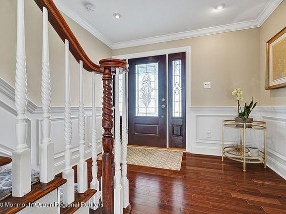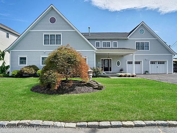 Spectacular one of a kind 5 bdrm, 4.5 bth custom designed upscale waterfront retreat on 120 x 100ft lot. Covered bluestone front entry porch, Trianglo Brazilian Chestnut Wood flooring & Sunburst shutters throughout. Gourmet kitchen features Labradorite Granite Island, Wolfe oven w/pot filler, Jennair confection oven, refrigerator, dishwasher & microwave. 28 x 23ft Great Rm w/ surround sound ,gas fplc & custom woodworking.Double staircase. Designer Master bdrm has Tiger Wood floors vaulted ceilings & walk in closet. 2 additional master size bdrms on 2nd floor & 2 full bths. 2 bdrms or office/den on 1st floor. Mud room has 1/2 bath with door leading to backyard oasis featuring L shape heated salt water pool, outside sound system, 120ft of vinyl bulkhead ,dock,3 jet ski platforms & much more