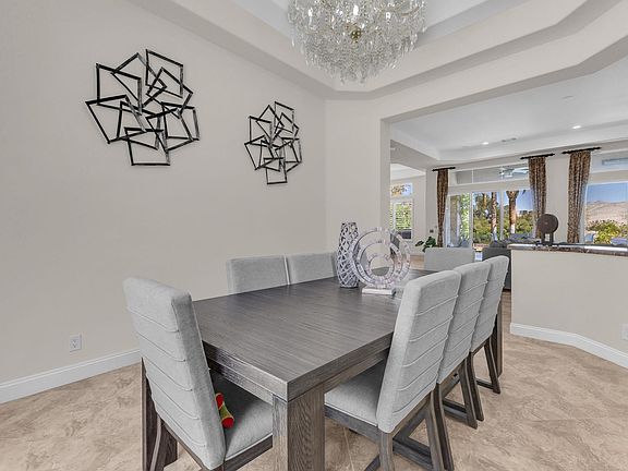 Let your time in the sunshine begin with this beautiful well appointed home! Discover Elevated Desert Living at Guard Gated Mira Vista! This expanded Piedra floor plan offers 4 spacious en suite bedrooms, 4.5 bathrooms, and solar system blending luxury with efficiency. The attached casita, complete with its own bath and steam shower, is perfect for guests or multi generational traveling. Step through a private courtyard and into a light-filled interior with soaring ceilings and uninterrupted views of the Gary Player Mission Hills North Golf Course plus striking mountain backdrops. The open layout is ideal for both relaxing and entertaining, featuring thoughtful upgrades like surround sound (indoors and on the patio), a Swarovski crystal chandelier, and a cozy outdoor gas fire pit. Outside, enjoy your own private oasis with a saltwater pool and spa, extensive patio space, and peaceful golf course views perfect for gatherings or quiet sunset evenings. Access to two tennis courts, this home checks every box for desert luxury. Rates Vary by time of year and lengeth of stay!
