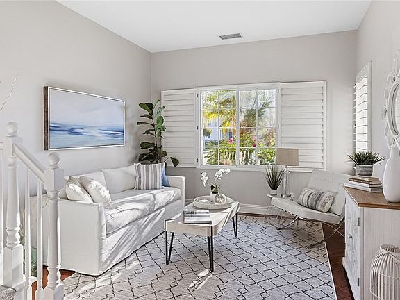 This Coastal Living home, in the Village by the Sea, is the Largest Floor plan in Seaside offering 5 bedrooms, 3 bathrooms and spacious open living space. Situated on a Cul-de-Sac, this beautiful property has luscious landscape and a backyard designed for outdoor entertaining. The home offers 4 bedrooms upstairs, with a main floor bedroom or office. This home features 2-story High Cathedral Ceilings and and open concept floor plan that is bight with natural light. Enjoy the new carpet, hardwood floors, and plantation shutters throughout. Spacious Master Bedroom with his and her closets and en-suite bath with vanity. The Master Bedroom overlooks the lush landscapes of the home. Enjoy peaceful walks through the green belts and nearby Talega Park.