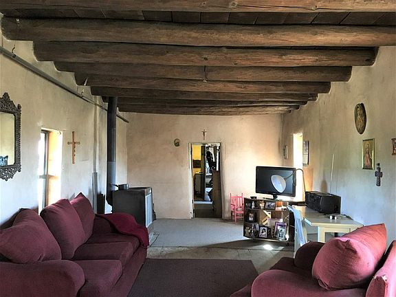 Views plus a 100+ year old log/adobe home 2 bedroom 2 bath on over half an acre. The log home has been made into two private living spaces, each end has one bedroom one bath, however there is only one kitchen. The home is being lived and needs updating and repair and has the potential to be a duplex. There is a single wide on the property can be rented or lived in while the Log home is being renovated.