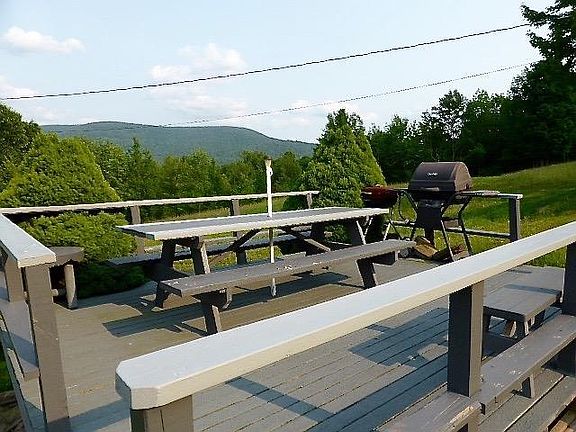 The Hills are Alive in Roxbury NY! 51.33 +/- acres perched perfectly on top of the world is a haven for a seeker of solitude or the avid adventurer. Could that be you? This property is so private you can shout out your secrets to the mountains or give it your best Ethel Merman belt. Choose your pleasures! Hike, bike, snowmobile, 4 wheel, hunt or just observe nature in all her splendor. This property comes with a meticulously kept 2000 model singlewide. 2 bedrooms & 1 bath is just right + the spacious open floor plan includes an EIK with a breakfast bar & light filled living room. Enjoy cooking & dining alfresco on the 20 x 20 deck complete with electric & septic hook up for a camper. The panoramic views will take your breath away. Close to Plattekeill & Belleayre Mountains for skiing. This is the place to be if seclusion is your desire.