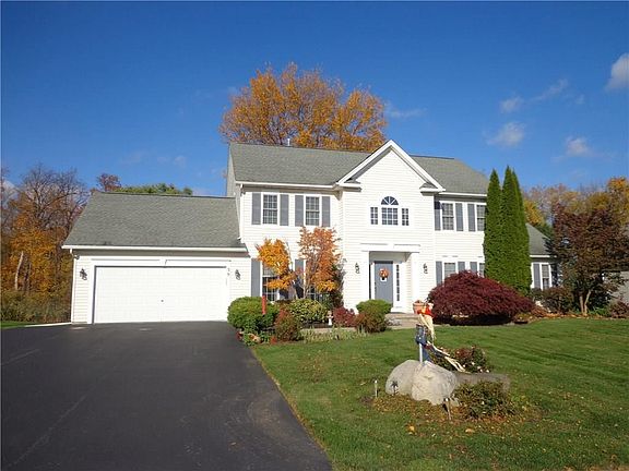 IN-LAW POTENTIAL OR GUEST SUITE FLOOR PLAN! Meticulously Maintained 5 BR, 3 1/2 Ba Colonial provides a Versatile Floor Plan. Hilton School District and Desirable Neighborhood featuring Sidewalks & Streetlamps! TWO MASTER SUITES (on 1st and 2nd fl) each with Cathedral Ceilings, Full Bath, Walk-in Closet and Living Room/Den/Office and Multi-zone Heat/Cooling! Spacious Updated Eat-in Kitchen with Granite Counters & Island, Cherry Cabinets & Hardwood Flrs - Open to both the Great Room and Breakfast Room with Sliders to Deck. Freshly painted with Designer Colors. Bedrooms are all good sized with Ample Closet Space. The Lower Level walks up to a 2.5 Car Garage. You'll enjoy the Lovely Yard & Maintenance Free Deck-Perfect for Entertaining. The Triple Wide Driveway is an added Bonus! Welcome Home!