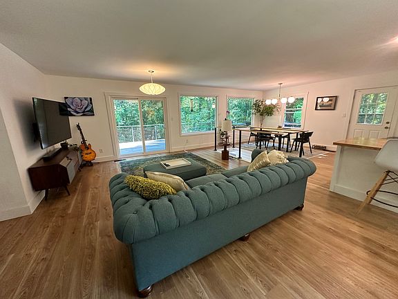 Beautiful mountain getaway feel but only a 10 minute drive to downtown, this large 3 bedroom, unfurnished home has a separate lower living level with its own entrance. Enjoy the peaceful oasis vibe with a mountain stream running through the yard. Recent renovations include updated kitchen, installation of large picture windows looking out into nature, new spacious deck with see through cable railing, an 8 foot privacy fence in the front, new windows, and an efficient HVAC system with dual controls for upper and lower levels. The lower level has its own full kitchen and living room. Enjoy easy access to the outdoors with the Blue Ridge Parkway nearby. There is great birdwatching from your living room couch and endless garden opportunities in the large yard if desired.