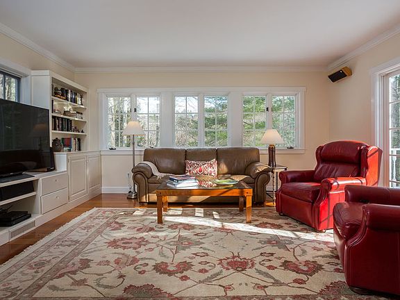 Spacious and light-filled Modern Farmhouse perfectly situated on 6.47 private acres of open level lawn highlighted by mature trees and established gardens. The first floor of the home includes a large living room with fireplace that opens to an outdoor deck partially covered by a handsome pergola. From here, a large eat-in kitchen with granite countertops flows into a family room with custom built-in bookcases as well to a formal dining room making it a wonderful entertaining area. Upstairs, the master bedroom with en suite bath has French doors that open to a private balcony. One will find two additional bedrooms that share a bath on this floor as well as a finished room on the third floor that could be used as a home-office or an additional bedroom. The home's lower level has also been finished incorporating a full bath, cozy wood stove, and private entry. As a bonus, above the attached two-car garage, there is a spacious office with full bath and galley kitchen. And not to be overlooked is a remarkable workshop with vaulted ceiling and radiant heated floors which could be made into a lovely pool house or guesthouse. All this with nearby Mohawk Mountain skiing, Cornwall Village, endless outdoor possibilities, and centrally located in the Litchfield Hills. Less than two hours from NYC, an ideal weekend retreat! *some photos are virtually staged.