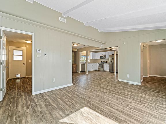 This beautiful residence features an inviting open concept layout, perfect for modern living and entertaining. As you step inside the foyer, you’ll be greeted by a spacious living area filled with natural light, seamlessly flowing into the dining space and kitchen. This home has two bedrooms with an incredibly large third room that can be utilized as a third bedroom or family room. With plenty of closet and cabinet space, the new owner will never run out of storage., The property holds enough space to store an RV along with 3 storage sheds that stay with the property. A brand new roof and gutters were installed in 2018. With no HOA, a new owner has the freedom to truly customize this home and make it their own.