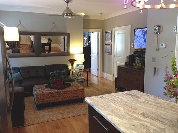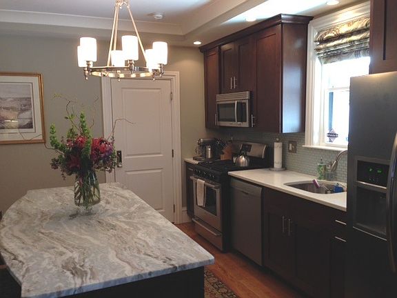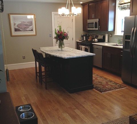 Gorgeous 2 bedroom, 1 bath unit in Charlestown with open floor concept and side deck in a wonderful neighborhood. Parking for 1 car is included in the rent and this dedicated OFF-STREET PARKING spot is located at the back of the house. Unit was completely remodeled in 2013 and includes hardwood floors throughout, 9 foot ceilings (with crown molding in the kitchen and living room) central AC, full size washer/dryer, and quality fixtures and lighting. Kitchen includes Bosch SS appliances, dishwasher, 5 burner gas stove-top, custom soft-close kitchen cabinets, and granite countertops. The island was just installed 3 months ago and has deep, soft-close drawers and a built-in wine cooler. Both bedrooms are of great size (can fit a king size bed in the master bedroom) and offer ample closet space. Unit offers plenty of natural sunlight and windows all have custom window treatments. An additional private storage unit is located in the basement. On the 93 bus route, easy access to Route 1 and 93, and a short, easy walk to the Orange Line T station. Dog park at the bottom of the street. I am looking for respectful and clean renters who will enjoy this beautiful & well maintained space as their home! Unit is available starting 4/1/15. Non-smoking unit Dogs negotiable Cats not allowed All snow removal (from the sidewalks, driveway, and back parking spots) is covered by the condo association. There is no extra charge to the tenant. Owners pays for water, snow removal, and trash pick-up. On the 93 bus route, easy access to Route 1 and 93, and a short, easy walk to the Orange Line T station. Dog park at the bottom of the street.