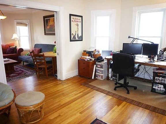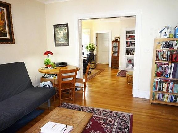 Avl NOVEMBER 1. WALK ~ 5 min. PORTER T! or ~ 10 min. DAVIS T! Cat OK, dog OK/negotiable. Very SPACIOUS (~1100sf) completely RENOVATED 4-room 1+ bedroom with CENTRAL AIR-CONDITIONING, PARKING, large rear BRICKED PATIO, REDONE KITCHEN and BATH, separate dining room or study, front PORCH. On CHARNWOOD ROAD near HANCOCK STREET, steps to SHOPPING and many RESTAURANTS in Davis and Porter. Bright SECOND FLOOR in a very well kept 3-family house on a quiet side street. LARGE ROOMS with HARDWOODS, HIGH CEILINGS and MEDALLIONS, bay windows, period detail. Living room with ELEGANT MANTLEPIECE, dining room with BUILT-IN HUTCH. Large REDONE EAT-IN KITCHEN with gas range, built-in microwave, dishwasher and disposal, refrigerator, pantry. Full REDONE BATH. Double-paned windows. Newer HEATING/COOLING CENTRAL A/C system. FREE shared WASHER/DRYER (no coins) and STORAGE in basement. Tenant pays gas (heat, hot water, cooking) and electricity. INCLUDES OFF-STREET PARKING for one car.