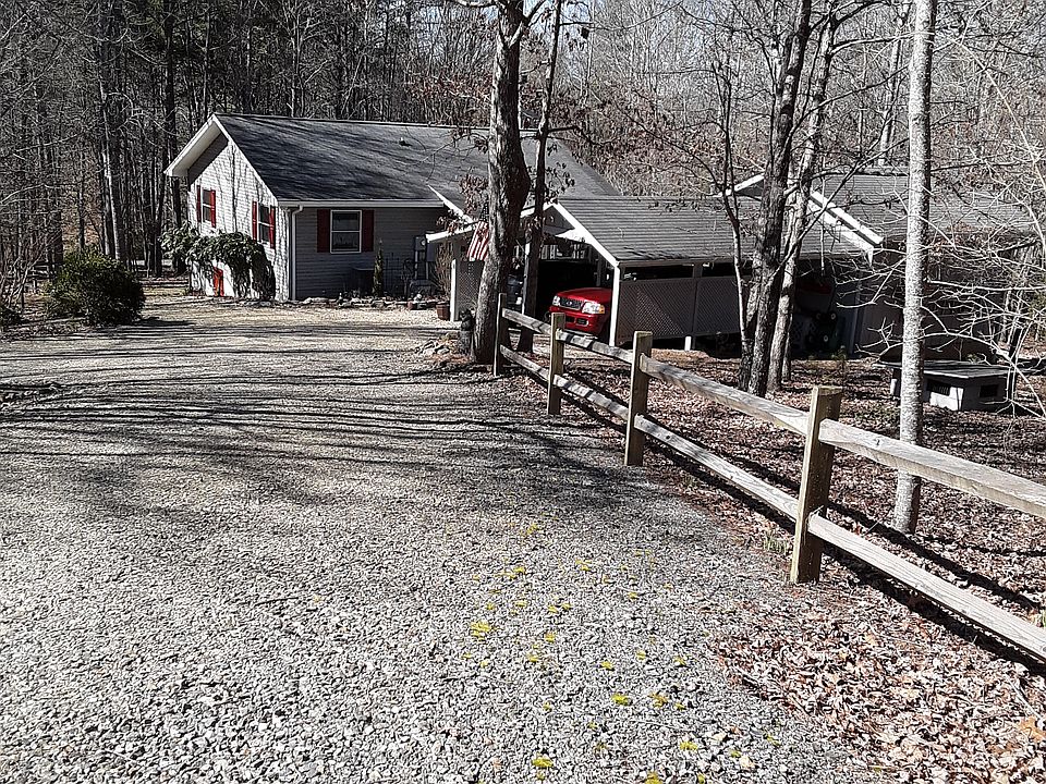 ONE LEVEL LIVING. Amazing opportunity. NO GRASS TO MOW! 2BR/2BA Plus Beautiful Sunroom and Finished Entry Porch. Vaulted Great room w/ gas log fplc, Wormy Chestnut Feature wall, wood floors, Generous kitchen, Wide doors! Fantastic Deck & outdoor space. Detached Workshop w/ window H/A, 6 Person Hot tub, Large 2 Car Carport + Mega Driveway space! 1.397 Hard-wooded Acres!!! Gentle Level land. Floored Attic. Whole house gasoline generator.