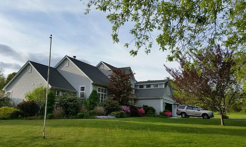 Spacious open floor planned home, enjoyable in ALL seasons, sited on a beautifully landscaped private 2 acre lot. Horse friendly !! Chefs kitchen with gourmet Wolfe 6 burner stainless gas range with electric oven. Heat lamps and warming shelves. Center Island and eat-in kitchen table space. Kitchen flows into Family room with gas fireplace for winter nights and 2 sliders out to raised concrete patio for outside seasonal entertaining. Summer enjoyment in fenced in-ground heated swimming pool area with pool house. First floor bedroom and bath suite with walk in closet. Second floor bonus room with slider and outside balcony overlooking beautiful acreage and pool area. Could be used as additional sleeping space/bedroom, office, great room, inlaw quarters etc. Full unfinished basement could be finished for additional recreational space. Something for everyone !! Come see !!