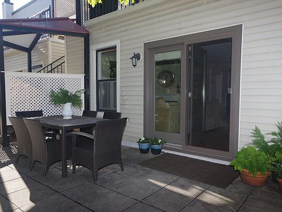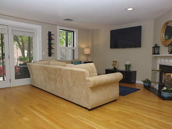 Chestnut Street two bedroom condo with garage parking and a rental parking space, and a large patio offers one bathroom with a steam shower and a half bath. The kitchen offers a custom chef range with gas cooking; a stainless refrigerator and dishwasher and microwave; and a deep sink and granite counter tops and a breakfast bar. The open living room with a gas fireplace and the dining room with a large pantry provides great entertaining space that opens through a sliding glass door to a 80 foot patio. The entry has a coat closet, and ample room for a bench. The master bedroom has a double closet, as does the second bedroom. The tiled bathroom has a steam shower; the half bathroom has decorative vanity. The in-unit stack laundry plus a common laundry completes the ease of living. Walk Score 93. Easy access to Water Shuttle, MGH Shuttle, North Station, and highway access.