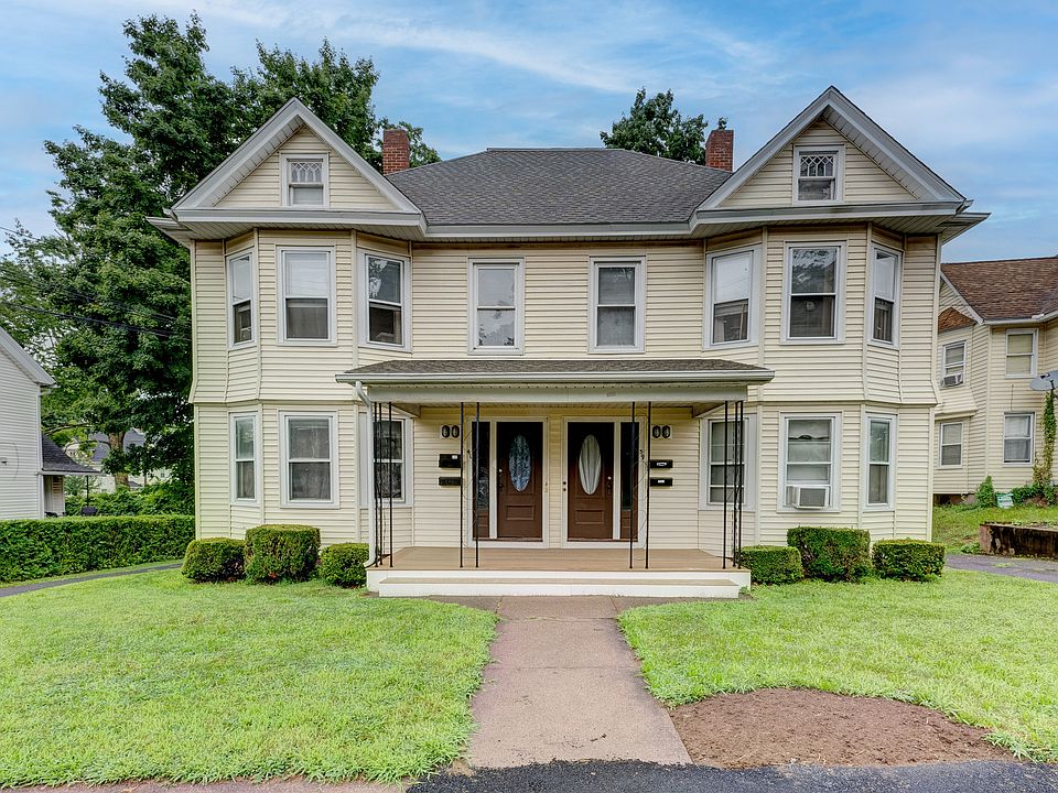 This is a very nice 4 family in the center of town. All units are 2 bedrooms and 1 full bath. All units pay their own gas utilities and electric bills. Rents are below market in many cases. Long time family owned property. (many decades). Ample parking off the street in the rear. Vinyl sided and a newer roof within the past few years. Front porch has new trex type decking. Full basement area with storage areas plus utilites. Common areas and exterior are all refreshed and in good shape. Turn key investment property. Jump in to the vibrant rental community in Manchester, or expand your portfolio. The condition of the units varies, but they are all reasonable to very good. All the units have laundry hookups. Rear access from the outside in to the basement is great for the owner who wants to store tools or other items to maintain the property. Walking distance to stores, restaurants, downtown Manchester, bus lines. Excellent opportunity!!