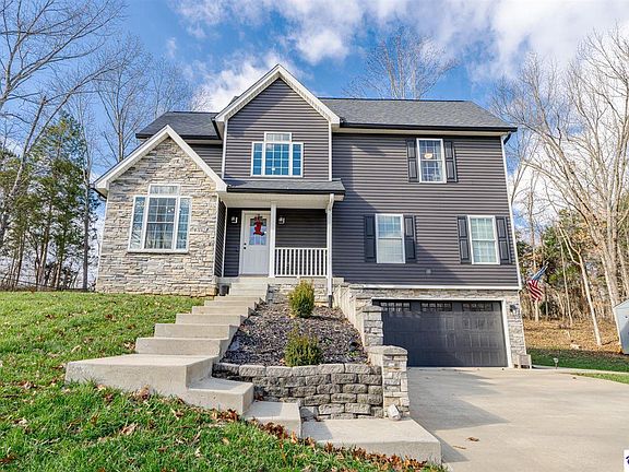 WOW! This one has it all!! Style, comfort and privacy are found here with this custom build tucked away on a triple lot, in a private cul de sac that backs up to a farm. Truly a fabulous location within the gated community of Doe Valley. You wont find anything else on the market like this one, at this price. From the moment you walk in; you are greeted with intoxicating features such as: interior balconies, cathedral ceilings and a custom electric fireplace. The primary bedroom boasts tray ceilings and private ensuite features double vanity, separate shower and soaking tub; all on the main level. The design of this home is an entertainers dream including a formal dining room, laundry and half bath also on main level and continuing to the basement is an additional family room, bar area, full bedroom and full bath! Upstairs you find 2 bedrooms and another full bath. If all this wasn't enough; the Gated Community of Doe Valley offers amenities that include a 360 acre lake, marina, two beaches, club house, golf course, tennis courts, private security, play grounds, pool and camping.