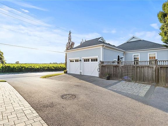 Welcome to luxury living in the heart of "The Village" by Gatta Homes! This rare, custom-built detached bungalow offers over 2,900 sq. ft. of beautifully finished space, with FOUR bedrooms and FOUR bathrooms, set on a premium corner lot with 50 ft frontage, a gorgeous in-ground pool and mature landscaping.Step inside and experience a refined open-concept layout with soaring 10 to 16 ft ceilings, wide-plank hardwood floors, pot lighting, and elegant millwork throughout. The stunning Elmwood kitchen is a chefs dream featuring built-in stainless steel appliances, a massive island, pantry, and ceiling-height cabinetry. The spacious Great Room is the heart of the home, anchored by a gas fireplace with custom built-ins and expansive views of the backyard oasis. French doors lead from the dining area to a 37 ft enclosed porch perfect for entertaining or soaking in sunset views over nearby vineyards. The Primary Bedroom retreat includes dual closets and a luxurious 5-pc ensuite. A second bedroom/den offers flexibility, with direct access to the screened-in porch. The main floor also features a stylish powder room, large laundry, and direct entry to a double garage with 12 ft ceilings ideal for storage or a car lift. Step outside to your private paradise an in-ground plunge pool, stone waterfall feature, and manicured gardens await. The finished lower level adds two additional bedrooms (each with ensuites), a large family room, and a flexible bonus room perfect for an office, gym, or wine cellar. Enjoy premium craftsmanship, an unbeatable location, and a vibrant lifestyle. Walk to shops, restaurants, wineries, and the community centre. Minutes to historic Old Town. This is more than a home its a lifestyle.