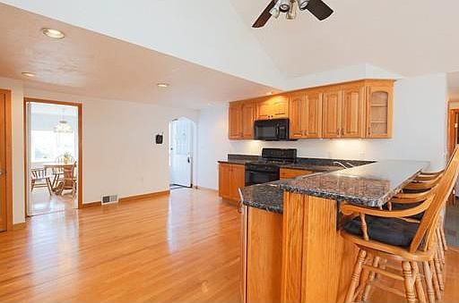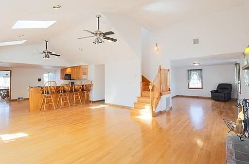 Expanded Cape in desirable Rangeley Acres neighborhood. This well maintained and updated 4-bedroom home has tremendous curb appeal and boasts 3,511 square feet of living space. Highlights include a newer kitchen with granite counters, dining peninsula and open layout. The massive great room with 11 cathedral ceiling has sliding doors that open to 10 x 25 Mahogany deck overlooking the professionally landscaped yard. First floor includes a formal dining room, traditional living room, bedroom, bonus room, 1/2 bath and 3/4 bath with laundry. The unique split 2nd floor offers extra privacy with two front bedrooms and full bath and separate access to a master suite with 3/4 bath. The basement includes a finished game room, expansive 30 x 35 workshop and storage space. Attached two-car garage provides direct entry. Parking for four cars in extra wide driveway. Fully fenced back yard with irrigation, shed and mature Purple Beech tree is perfect for entertaining, gardening and family living.