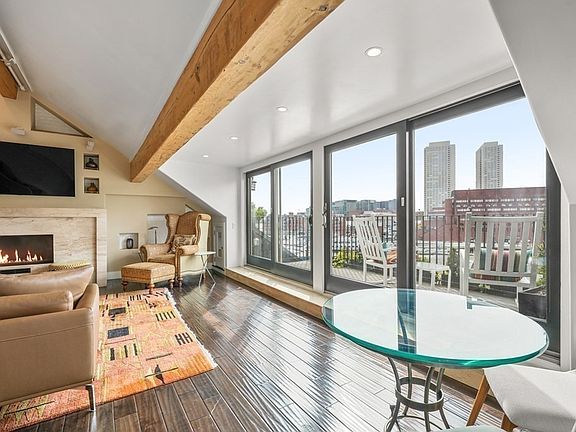 Located inside a historic waterfront property, this two-bedroom plus office, two-bath penthouse boasts magnificent harbor and city views. Bricks and beams add character to the contemporary loft-like home, graced by soaring 20' ceilings & floor-to-ceiling windows. Sprawling entertaining spaces flow throughout, from the chef's kitchen with custom Wenge cabinetry and Caesarstone counters, to the elegant formal dining area, to the living room & gas fireplace. Gaze at the harbor & skyline from two walk-out terraces, located at opposite ends. Skylit primary suite boasts a wall of windows, expansive walk-in closet, & en-suite bath with a glass shower, soaking tub and premium finishes. State-of-the-art features include motorized shades and a built-in audio system. Professionally-managed building offers 24-hour security & both exclusive and guest parking. Ideally located near North End and Downtown shopping and dining, Columbus Park, and all major transportation points. No elevator in building