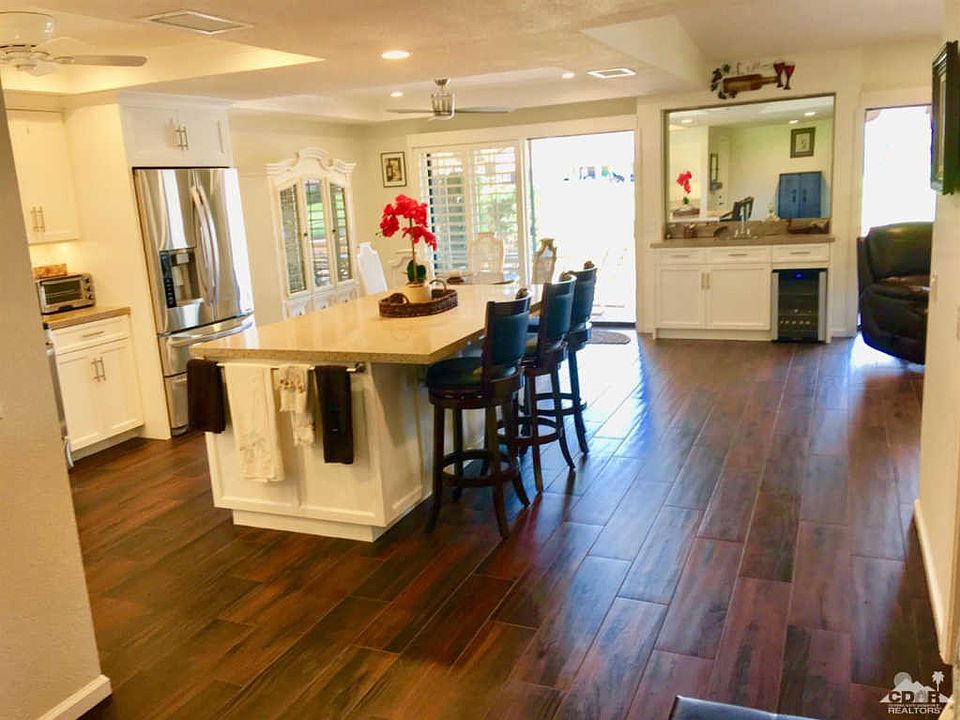 FANTASTIC remodeled 3 bedroom luxury home on the golf course in Chaparral Country Club. The main living area is distinguished by its vaulted ceiling, fireplace and two sets of sliding glass doors enable traffic to spill seamlessly outdoors. The floor plan is open with kitchen fit for a chef, new quartz counter tops, stainless appliances, LED low voltage lighting and wood plank style porcelain floors throughout. Updated bathrooms with custom showers and quartz counter tops. Two car garage. Enjoy your upgraded & extended patio with endless south east facing fairways, sparkling lake and panoramic mountain views. The home blends fantastic indoor-outdoor living. If you seek the best in views and residence you must view this home!!!