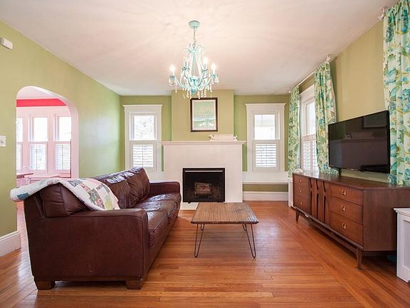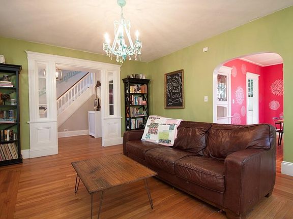 BRIGHT & CHEERY home offers charm, gleaming hardwoods, high ceilings & updates throughout. Front entry welcomes w/views of open first floor including living & dining rooms & updated kitchen- all freshly painted. Great circular flow for entertaining & everyday living. Plenty of natural light floods the space through the newer replacement windows. Kitchen updates include white cabinetry w/satin nickel hardware, granite tops & stainless appliances. Dining room features beautiful glass front cabinet w/large opening to living room w/fireplace flanked by window seats. 2nd floor features three bedrooms, all w/hardwoods & closet space, plus tiled full bath. Walk up third floor offers two more bedrooms w/wood flooring plus newly renovated bath featuring laundry, tile floor set in herringbone pattern, white wood vanity w/marble top & enclosed shower. Basement level features plenty of storage with custom shelving. Fenced in back yard offers plenty of green space & adjacent to quiet side street.