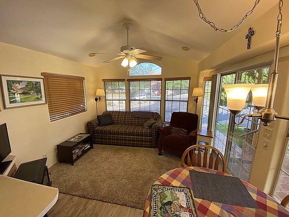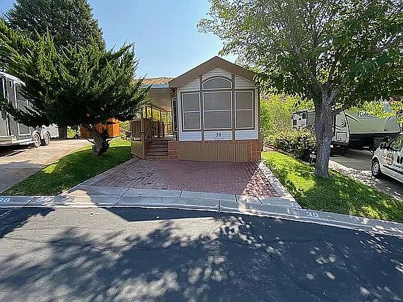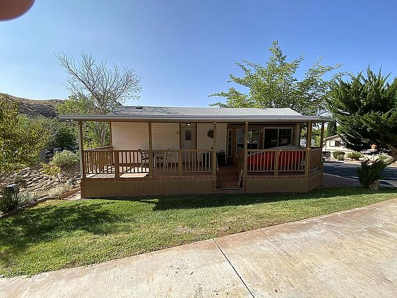 A rare gem at Harrisburg Estates! Cute as a button 1-bed, 1-bath park model with tiled covered deck, fully furnished turn-key property accompanied with amazing views. Community has beautiful club house and in-ground heated pool/spa, putting green and parklike setting close to Quail Lake and Red Cliffs recreational areas. Dog friendly(2),no size limit, short walk to dog park. Buyer to verify.
