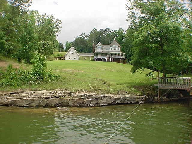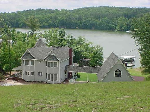Situated on 9 Ac. with year round deep water and boat launch. Hardwood and tile floors throughout home. Master suite w/french doors onto balcony over looking lake, 2 walk in closets, sitting area. En suite has vaulted ceiling, jetted tub and separate shower. Bedrooms 2 & 3 have a Jack & Jill bath. Very large open floor plan! Kitchen has custom cabinets, work island, pantry, gas stovetop, granite countertops, tile backsplash. Gas fireplace in livingroom. Game room big enough for a pool/snooker table plus a bar. Oversized diningroom. Heated and cooled basement offers a media room with sound deadening walls, FEMA certified Safe Room, full bath and extra storage. Wrap around porch with screened area off kitchen. Generator for power outages. Double 2-story garage, gentle slope to the water! Double party deck. Swim platform/dock. Private boat launch. Acreage is mostly wooded! HIGE WorkShop with 10 bays, roll-up garage doors, full bath, loft storage, heated with propane.