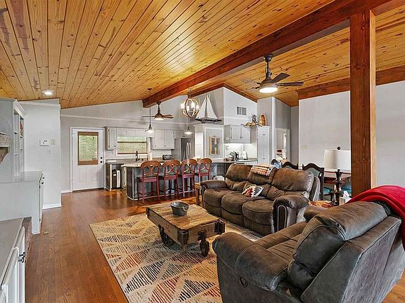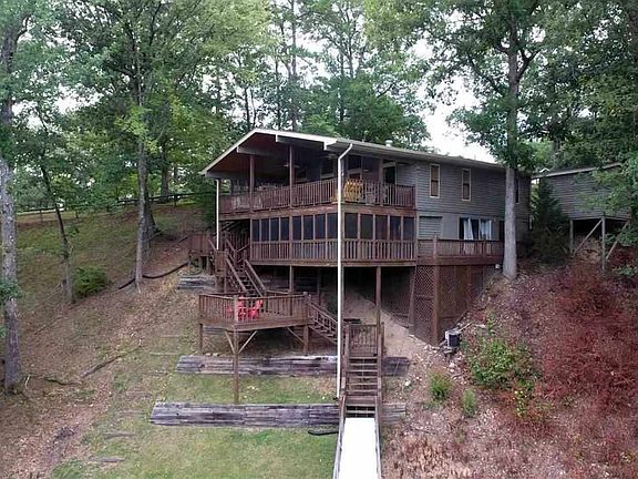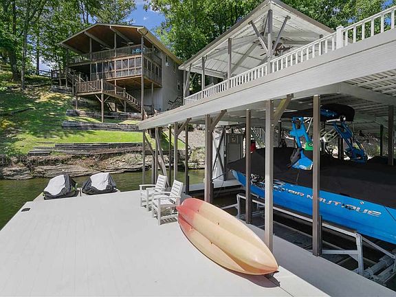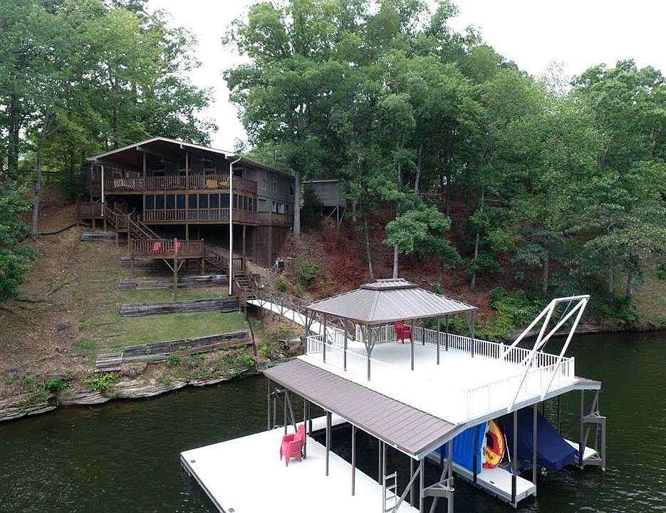 This 4 BR, 3.5 BA Pickwick cabin has been updated & is located in a protected deep water cove with amazing views of Yellow Creek. Interior amenities include an open kitchen/living area with vaulted tongue & groove ceilings, hardwood floors, granite counters & stainless appliances. The great room opens to a large covered deck overlooking the lake. A lower screen porch is just a few steps away from the waters edge. Selling furnished and comes with a private boat dock, boat lifts & sea doo lifts.