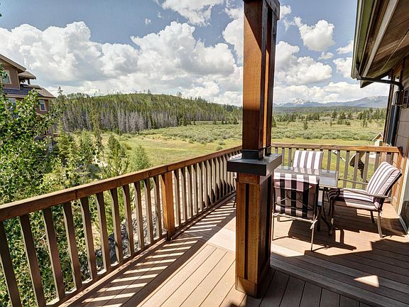 Immaculate 2Br/2Ba in Cozens Pointe! Sunny and bright with southwest exposure, this single floor condo has it all. Open kitchen and living areas feature beautifully finished cabinets, granite counters, tile floors, wood beamed ceiling and a gas fireplace. Sliding glass door opens onto a hot tub ready deck overlooking a meadow with Byers Peak in the distance. Master suite includes full bath, 2nd bedroom and an additional A3/4 bath finishes out the living space. Attached single car garage accessed directly from the unit. Utilities (gas, water, heat, cable & WiFi) included in HOA fees. Set behind the ridge above Grand Park, with convenient access to shopping and steps from the free shuttle.