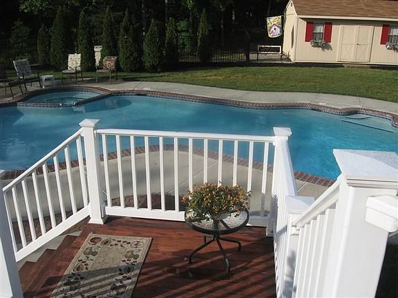 Custom built home. 1st floor has 10' ceilings. Open staircase in huge foyer, granite countertops in kitchen w/maple cabinets, several sliders, multi-level deck, Master Bedroom suite w/powder room, Master Bath w/Jacuzzi tub, tile shower, double vanity. 4BR's on 2nd floor w/open loft overlooking Family Room. Walkout Basement to brick patio. Basement has polysteelwalls & steel beam. Home was custom built w/plywood walls. beautiful in-ground ganite pool w/8 person hot tub. Pool house/shed stays. Cedar/vinyl decking. 7' wide wrap-around porch. Dimensional shingles & so much more! A must see!