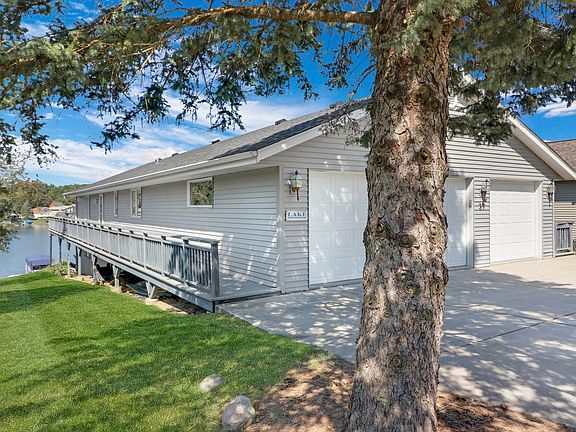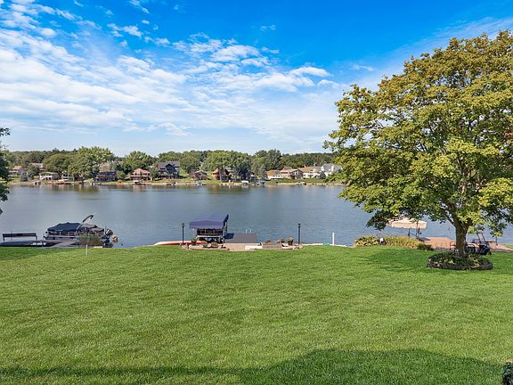 Step into this beautiful ranch home and you will immediately be captivated by the gorgeous view of the lake. Step outside to the deck from the bright, open concept living room, dining room and kitchen area boasting high ceilings.  Kitchen was remodeled in 2018 and updated with new appliances and a Jenn-Air gas stove that vents to the outside of the home.  Home has 3 bedrooms on the main level with an ensuite bathroom in the primary bedroom.  There are two additional full bathrooms - one on the main floor and another in the finished walk-out basement.  Incredible views of the lake can also be seen from the beautifully finished rec room in the basement where drinks can be served to your guests from the built in bar.  Lots of additional storage in the unfinished section of the basement as well as the extra space available in the oversized garage.  You can also watch beautiful sunsets from the paver patio near the water.  60 feet of lakefront with a newer pier/boat slip (2022). Amenities also include access to 2 beaches and an outdoor heated pool! Home is located in the Lake Summerset neighborhood - don't miss out on this incredible opportunity to live in this community that includes more amenities - Lake living at it's finest!