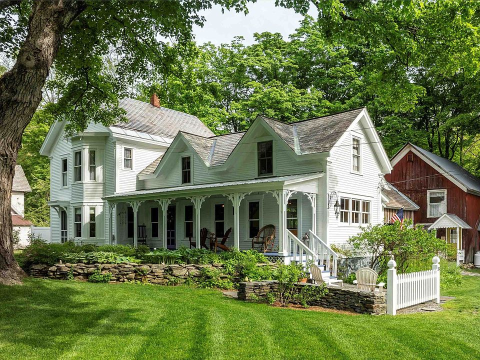 If a picture is worth a thousand words, you won't want to miss this incredible property. The pictures tell it all. This hidden Village gem is tucked away in a pastoral setting under a majestic maple with sweeping lawn, perennial plantings, stone walls, picket fence, patio and shaded garden seats. Located right in the in the heart of a Vermont village with its conveniences and sense of community, yet retaining a true sense of nature. Contemplate the scenic setting from the rocking chair under the covered front porch. Amble around the corner to village shops, Jamaica Market, and nearby dining. Meander along the river or hike nearby trails. Enjoy all the close by winter activities and sports. Though the house has been beautifully renovated, the charm and character have been lovingly retained with wood floors, original fixtures and architectural features. With an open floor plan for easy living and entertaining, the 4 distinctive bedrooms, custom kitchen with breakfast bar, library, corner study and vaulted loft invite you to linger, lounge and unwind when you move indoors. An attached storage shed houses all your equipment, gear and garden furniture. Plus a 1,400 sq. ft. two story barn apartment with private entrance, 2 bedrooms, spacious loft, convenient kitchen and wood floors offer extended living opportunities and income potential. A remarkable opportunity to own an outstanding, once in a lifetime property. Click on link labeled Unbranded Tour URL 1 for a Video Tour!