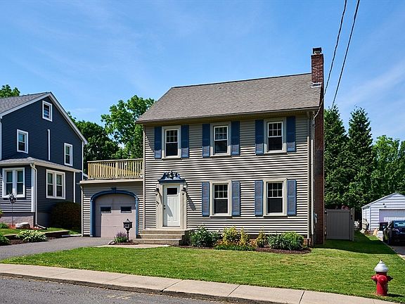 Highest and best offers due by Tuesday, June 11, at Noon. Seller will respond by end of day Tuesday. This beautiful Colonial is located in a great neighborhood, and is nicely updated to move-in condition! The first floor has spacious living room with a fireplace and hardwood flooring. The living room opens to a good sized formal dining room with hardwood flooring. The kitchen has a cute breakfast nook, good cabinet space, convenient access to a 1/2 bath and to an enclosed rear porch which leads to the fenced back yard. The second floor has 3 bedrooms and a fully remodeled bath with subway tiled tub/shower, and access to the roof deck over the garage. Recent updates include a newer water heater, remodeled full bath including plumbing feeds/drains, and freshly painted interior. All in a wonderful location with a wooded view across the street and close highway access!