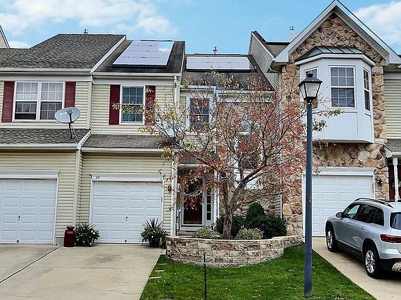 Gorgeous Jamison model townhouse located in the highly desired Clifton Mill community. Lower your carbon foot print with the included solar panel system. This beautiful home features 3 bedrooms, 2.5 bathrooms, a one car garage and a full finished basement. The townhome has been elegantly updated with a new custom kitchen, recessed lighting, and has neutral paint colors throughout. As you walk in, you enter into an inviting foyer with wood floors and cathedral ceilings. Then proceed to the spacious 9-ft ceiling first floor and a living room which has a beautifully accented gas fireplace and connects to a formal dining room. The kitchen boasts 42" designer cabinets, gorgeous counters and has upgraded stainless steel appliances. It also includes a breakfast area with access to a lovely fenced in patio. The second floor has three bedrooms and two full bathrooms. The master bedroom suite has vaulted ceilings and a large walk-in closet. The master bath is equipped with a double sink vanity, a Jacuzzi tub and a beautifully tiled stall shower. There is 2 additional generous size bedrooms on the second floor along with another full bath and a convenient 2nd floor laundry. Head downstairs and you will find a full finished basement. An attached garage rounds out this lovely home. The Clifton Mill community offers a swimming pool, tennis courts, and large green space for great outdoor activity fun. It also has plenty of additional convenient parking for guests. Convenient access to NJTPK, RT 295, RT 195, RT 130, River Line Rail and shopping centers. If you are looking for a home in a great, quiet neighborhood then this is the one for you! The location makes for an easy commute by car or train to many destinations including Philadelphia, NYC, Princeton and the Jersey Shore.