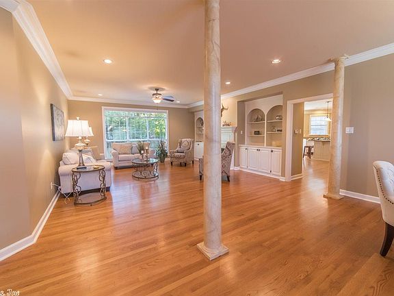 Gorgeous home in Bayonne Place within Chenal Valley. Beautiful crown molding, 3 1/4 hardwood flooring and open floor plan. Chef's kitchen with slab granite, huge pantry, gas cooktop & opens to hearth room with double sided fireplace & dining space. Main floor also features formal LR, dining rm, laundry and large master retreat w/luxurious bath. Upstairs, 4 large bedrooms, office, Jack & Jill bath & hall bath. Walk-in storage under house. Come See! Agent Remarks
