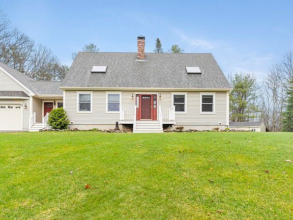 Welcome to that home you've been searching for! This 1997 Cape Cod is situated on 4.95 acres of rolling landscape and scenic views. On a clear day you can gaze upon the crest of Mt. Washington right from your front porch! You will first notice the ample parking to accommodate guests for get-togethers, or even park a couple of RVs without giving up your own outdoor spaces. When you enter through the front porch entryway you will be greeted with a semi-formal dining area that flows into the open concept kitchen and great room. The updated kitchen includes custom cabinetry, granite countertops complete with a center island to gather with friends. You can then slide on into the great room and warm up for conversation or relaxation by the wood burning fireplace that is constructed of stones gathered from the property! The first level also includes a guest bedroom and 3/4 guest bathroom as well as a media/entertainment room. On the second level you'll find the spacious primary suite with a large walk-in closet, two more bedrooms and an updated full bath. Ample space for protected parking in the attached 2 car garage with enormous storage area overhead that could also be finished for a recreation area. Note: This home is listed with the town as a 4 bedroom, and has a 3 bedroom septic design. OPEN HOUSES APRIL 30TH FROM 11AM-1PM MAY 1ST FROM 11AM-2PM!