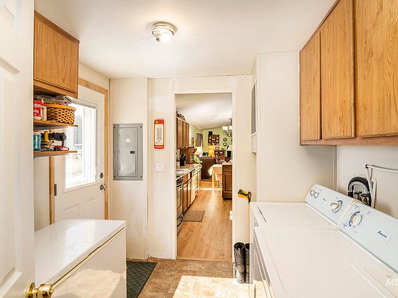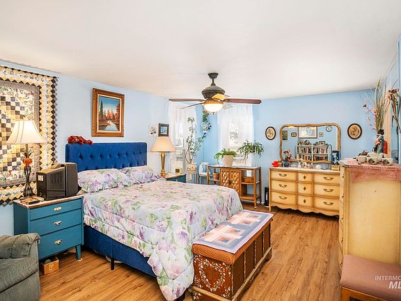 This 4 bedroom 2 bath home has been nicely maintained. It sits on an acre of land with circle driveway, nice storage sheds and plenty of room for a pasture or shop. The ground is flood irrigated for ease of maintenance. The interior of the home has been recently updated with new windows, doors, faucets, water heater, water softener, paint and LVP flooring. This country home, close to town, is in excellent condition. Call for an appointment today!