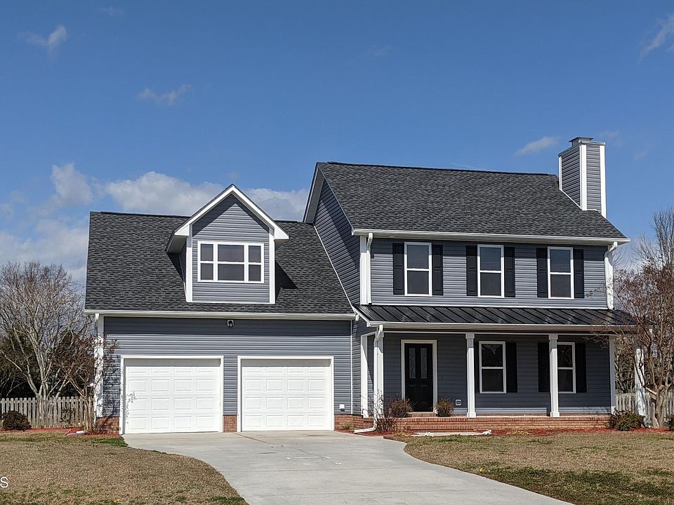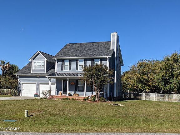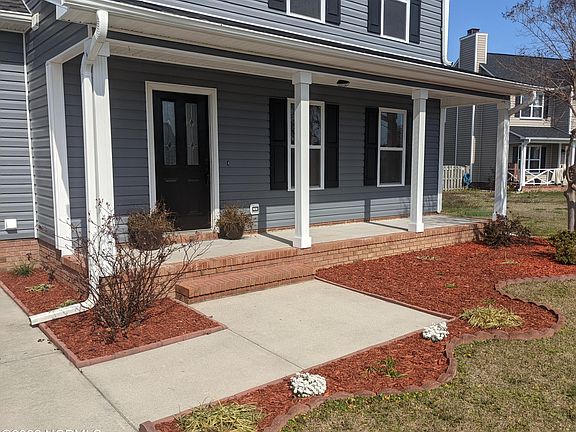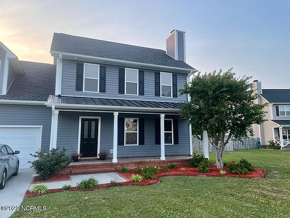 The inviting rocking chair front porch greets you as you enter this 4 bedroom home. Features include Open living and dining area, and spacious kitchen that just needs your special touches, half bath and true laundry room on the first floor. Upstairs you'll find the master bdr and bath with separate shower and garden tub. There are 3 additional Bdrs with one that could be considered a second master. Large two car garage with ample workspace and shelving for your DIY projects. Home has been freshly painted, and roof only 3 yrs old. Move in ready home on landscaped fenced cul-de-sac lot with shed. Large covered deck for entertaining and grilling then step out to relax and lounge around the patio style stone fire pit. What a great back yard for sports activities or add a pool! Just a few minutes to many local restaurants and local shops, Kiwanis Park ,Topsail Island and Sloop Point Marina