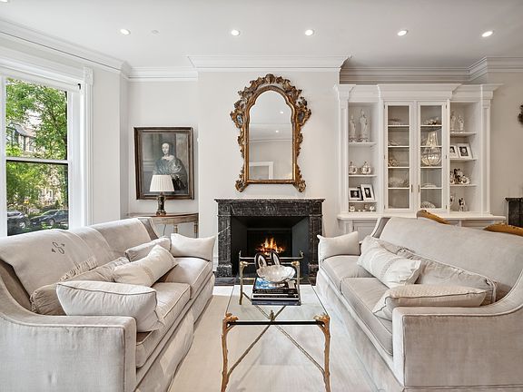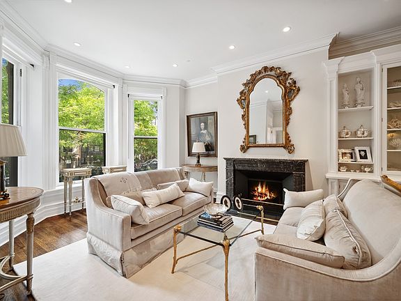 Historically significant yet fully renovated for contemporary conveniences, 39 E. Elm St. is a 4 bed/3.5 bath single-family townhome with serious pedigree and polish. Located in the preeminent, residential part of the Gold Coast, steps from the lakefront and Chicago's world-class dining and shopping, this 4,650-square-foot greystone stuns from the street thanks to a limestone facade, manicured landscaping and a beautiful, stately front door. Originally built in 1887 by Potter Palmer, aristocratic character endures inside, too, but every inch has been deftly designed with quality finishes and modern flow, beginning with an elegant foyer that flaunts black-and-white stone floors and detailed crown molding. Refinished, original hardwood floors connect this home's living and entertaining spaces, including a light-filled living room with custom built-ins and a marble fireplace, and an open-concept dining room that finds definition from a second fireplace and a gilded, crystal chandelier. This home's custom, all-white chef's kitchen features marble countertops, flawless Christopher Peacock cabinetry, professional-grade appliances, a large island with counter seating, another original fireplace, a butler's pantry with wine fridge, and immediate access to a private back terrace and patio. This home's refinished, spindle staircase is a lovely statement feature, and a stellar example of the millwork details throughout. Upstairs, the second level reveals a spacious primary suite and a handsome library/den with designer wallpaper and wall-to-wall bookshelves. The primary bedroom boasts more beautiful built-ins, a fourth fireplace, a large dressing room with accessories island, and a marble en-suite bath with dual vanity and a glass, walk-in shower. (Cabinetry in the primary closet and bath are Christopher Peacock as well.) The top floor presents two secondary bedrooms, a full bath and an upstairs laundry. This home's lower level features a large family/media room, temperature-controlled wine storage, a proper mudroom, and a garden-level guest/in-laws suite with a modern kitchenette. Additional details and amenities include newly renovated baths with heated floors and Lefroy Brooks/Perrin Rowe fixtures, fresh interior and exterior paint, designer lighting, Stark carpet runners, custom closets throughout, new blinds throughout, six total fireplaces, and a deeded parking space nearby that is included in the list price. With proximity to the best of everything on Chicago's Near North Side, including top schools and the Division Street Farmers' Market, 39 E. Elm St. is turnkey living for the refined homebuyer.
