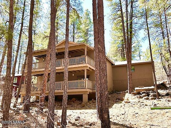 Beautifully maintained home nestled in the trees on a large lot. Spacious Master Bedroom on the main level. Large upper and lower decks create private outdoor space. Lots of windows and skylights bring in the natural light. Has A/C! All appliances included and move in condition. Pinewood Country Club membership is optional.