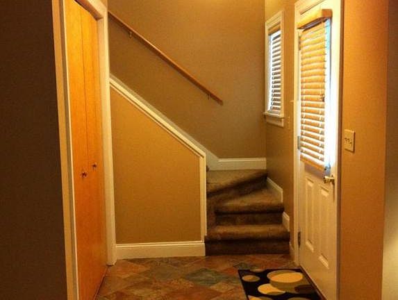 Move right in to this excellent two story home featuring 3 bedrooms and 2 baths with new carpeting and freshly painted! First floor bedroom & bath offer convenient living. Newly tiled modern kitchen with comfortable combo living and dining area. Upstairs features 2 bedrooms and full tiled bath plus extra walk-in shelved room for clothes, computer room or office. Full basement and fenced rear yard