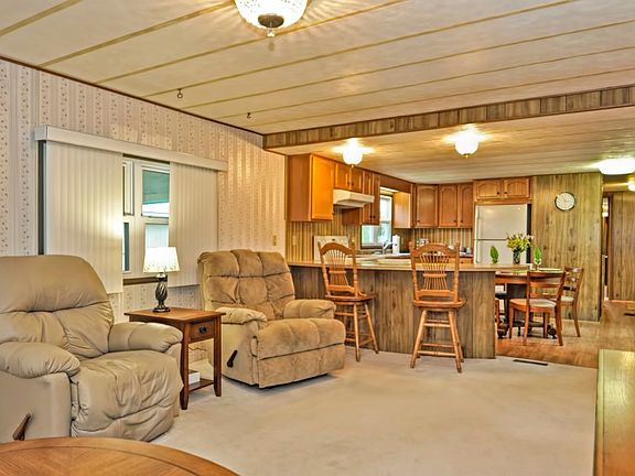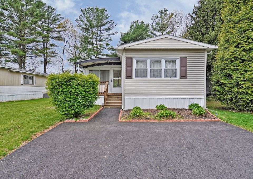 **OPEN HOUSE SUNDAY 5/19, 11-12:30** Welcome to Pine Hills Estates, a 55+ Community! Open floor plan makes for a seamless space from the living room to the kitchen. Kitchen boasts oak cabinetry, double sink, breakfast bar and a dining area. Master bedroom offers a built-in dresser, office area and an oversized closet. Second bedroom with 2 closets is great for hosting friends and family. Bathroom features an oversized, walk-in shower with built in bench that is handicap accessible. Enjoy weekend mornings with a cup of coffee all Summer from the 3-season room with sliding insulated windows. Central air, new galvanized kerosene tank for heating system. 9x9 shed allows for extra storage space or to use as a garden shed. Great backyard and close to restaurants, shopping and major highways. No Showings until the open house.