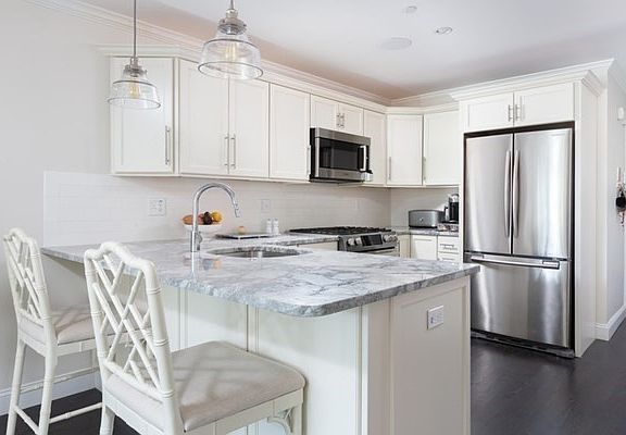 This magnificent 2 bedroom was totally renovated only 3 years ago. The unit is on the entire 2nd floor in a 100% owner occupied 3 unit building. There is an open stylish kitchen/dining/ living area. Kitchen incl. painted custom cabinets, stainless Bosch appliances and beautiful granite counters.There is a large breakfast bar with stunning pendant lights. Gas fireplace in living room with custom mantelpiece. High ceilings and stylish dark oiled hardwood floors throughout. The master bedroom has a spacious walk-in closet and direct access to an ensuite large Bianco Carrera marble bath with custom glass shower door, double sinks and whirlpool soaking tub. Attention to detail throughout with crown moldings and panel doors with lever handles.Great light on 3 sides! Pre-wired AC. Sprinkler System. Washer and Dryer in the unit. Eden Street has great walkability to Whole Foods and the Bunker Hill Mall, restaurants and public transportation. A classy home. Pet friendly.