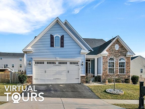 Still showing. Stunning 3 bd / 3 ba home with a split floor plan, luxurious primary suite, finished basement, and large deck! The attention to detail throughout is exquisite: Palladian windows, Bell Curve archways, tray ceilings, and stone accents, just to name a few. Upon entrance, you're sure to be impressed by the hardwood and LVP floors, vaulted ceilings, and open layout, inviting you and your guests. Entertain between the living room, by the floor to ceiling fireplace, and the chandelier-lit dining room, next to sliding glass doors to the deck! The kitchen brings the two spaces together and is equipped with granite countertops, tile backsplash, recessed lighting, and a center island with seating. Wind down in the spacious primary suite, which offers a walk-in closet with custom built-ins, a dual sink vanity, big soaking tub, and glass door shower! Two secondary bedrooms are located toward the front of the home, alongside a full bath. The carpeted basement level is sure to be the hangout spot for game and movie nights! There's also a newly added bath with beautiful custom tile work. Outside, host BBQs and relax on the partially screened-in deck, overlooking the sizable fenced-in lawn below. Central A/C and Forced Air heating. Two car garage. Community park with a pavilion and two playgrounds. Located near parks, dining, and conveniences, with easy access to hwy 340 and DC! Buyer should verify all information.