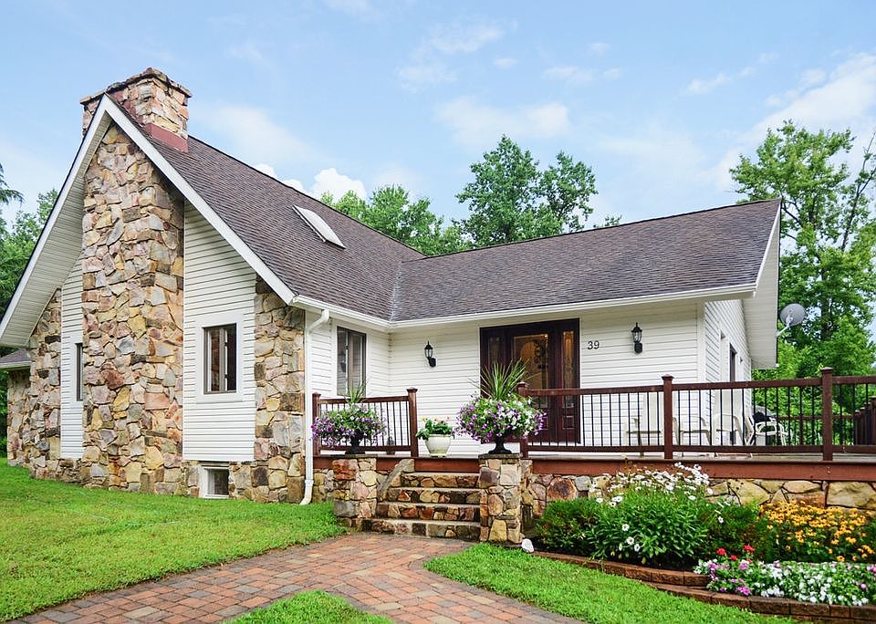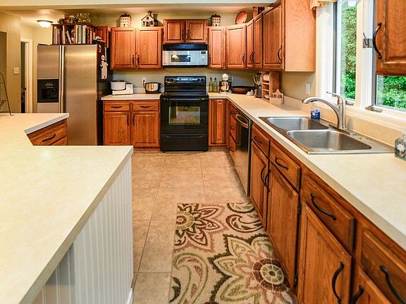 Country Escape. Come home to a 4 bedroom, 2 full bath Contemporary ranch with loft situated on a picture-perfect, private two acre wooded lot with pond views and wildlife abound. Some of the special features include marble wood burning fireplace, hardwood flooring, tiled foyer, full basement with walk-out, skylights and large eat-in kitchen with abundant counter space, pendant lighting, full pantry closet and plenty of cabinets. The basement offers potential second kitchen, large area for recreational activities, office and french doors to access the side patio. Other memorable features include wrap around porch, additional space above the garage(office, playroom, studio), master bedroom with sliders to the side porch and laundry room conveniently located on the main level. Opportunity Time... This home is being offered at a price substantially less than the most recent appraisal due to the following issues: the basement has water, moisture, mold remediation issues and will require sump pumps or a drain system. Also, the septic system will need a new d-box and has other non-compliant components per the 6/6/2016 inspection report. Property being sold "as is" and buyer will be responsible for any and all repairs.