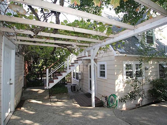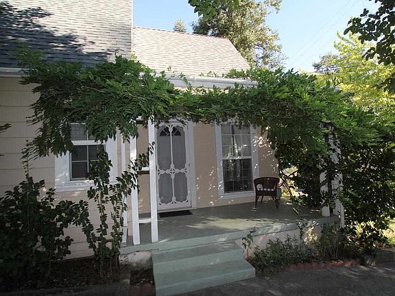 Delightful Sutter Creek Bungalow located in the heart of town. This well maintained home is located on a quiet street just off Main. This 1936 home is charming and bright. 2 bedrooms, one bath. Kitchen has abundant cabinets, garden window, dining room with built in china cabinets, living room with lg. windows to bring in the natural light. Bedroom have original wood floors. Basement that would be perfect for wine cellar. Relaxing front porch for morning coffee surrounded by Wisteria. Additional room's above house and garage , would be perfect for any variety of uses: studio, pub, guest's. Parking area to garage with a covered arbor. Outdoor deck has mature grapes over arbor.